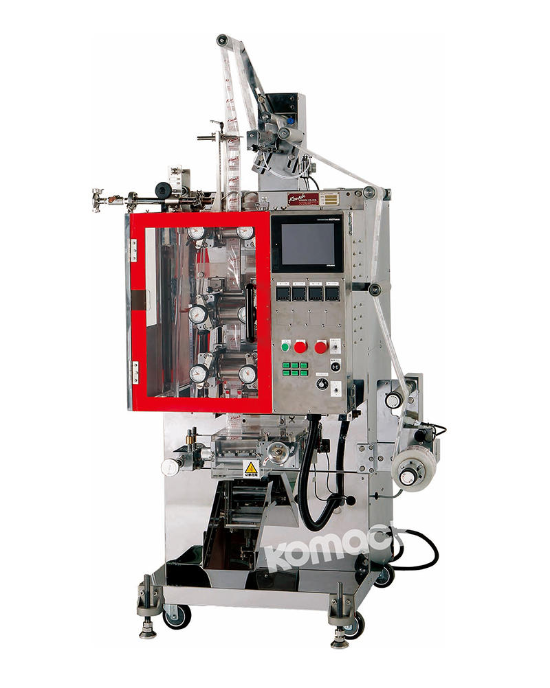 本機是裝載了經過嚴格選擇的對充填包裝小袋液體·粘體必須需要的裝置的自動充填包裝機。標配了色標光電跟蹤控制或者連續圖案運轉、袋長可變、切口深度調整、切割位置微調整、切割角度微調整等根據包裝產品的不同,制袋、充填必要的裝置。另外,可選擇不同的泵來對應連續充填及間歇充填。其它附加機能盡可能由本體中省去,實現了低成本化。