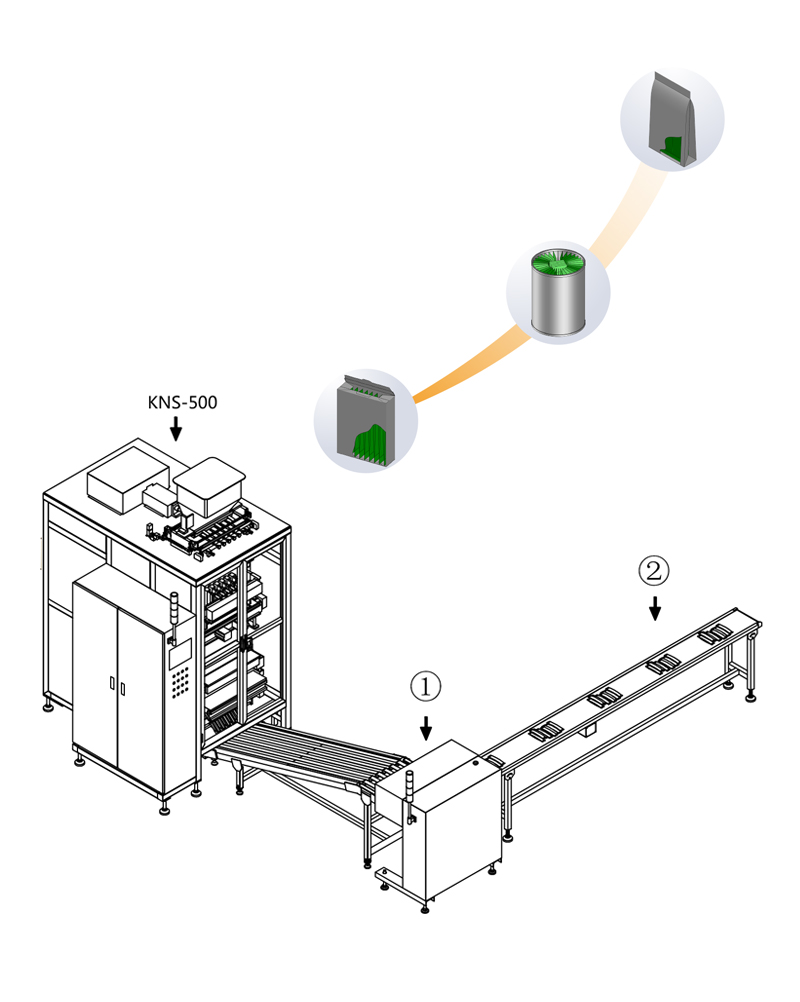本半自動(dòng)包裝生產(chǎn)線,由KNS-500自動(dòng)條狀多列機(jī)、自動(dòng)計(jì)數(shù)裝置、人工裝盒部分組成,可以自動(dòng)完成從原料灌裝到自動(dòng)計(jì)數(shù)、排出到人工裝盒的一系統(tǒng)過程。是減輕勞動(dòng)強(qiáng)度和節(jié)約成本的結(jié)合。